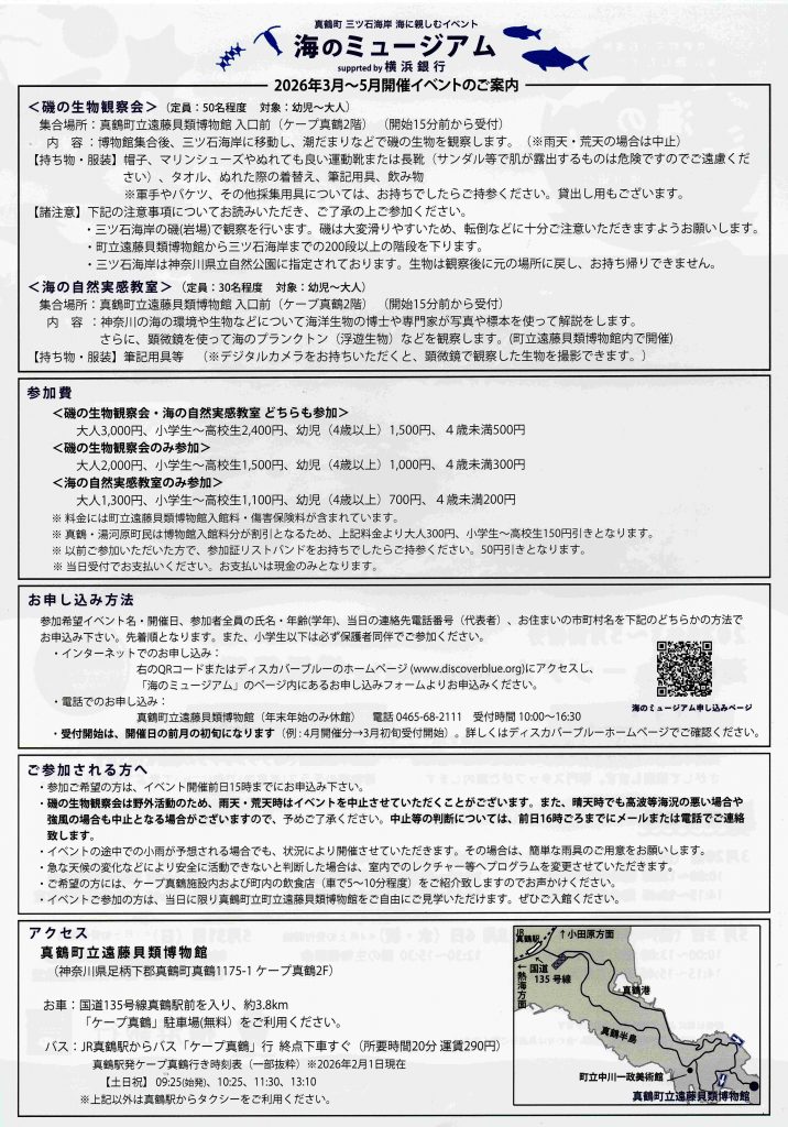 海のミュージアムでは、年間を通じて、真鶴の海と自然を楽しむイベントを予定しています。季節ならではの、自然の魅力を体験しましょう。